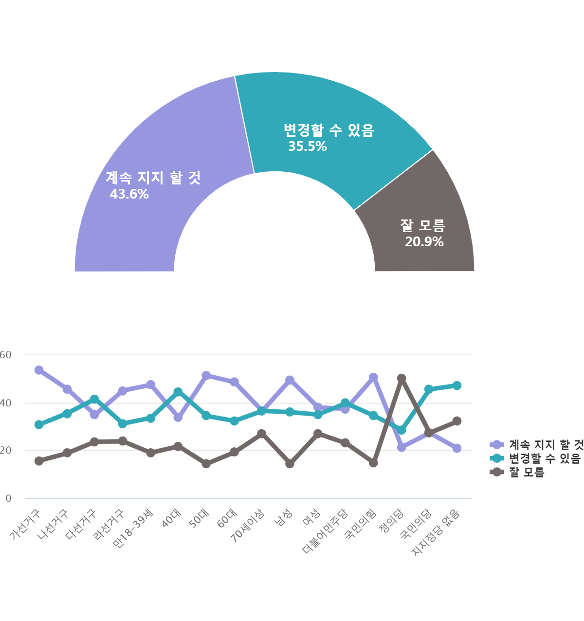 ¡Þ °è¼Ó ÁöÁö ÇÒ °Í 43.6%, º¯°æÇÒ ¼ö ÀÖÀ½(35.5%)º¸´Ù 8.1%p ´õ ³ô¾Æ