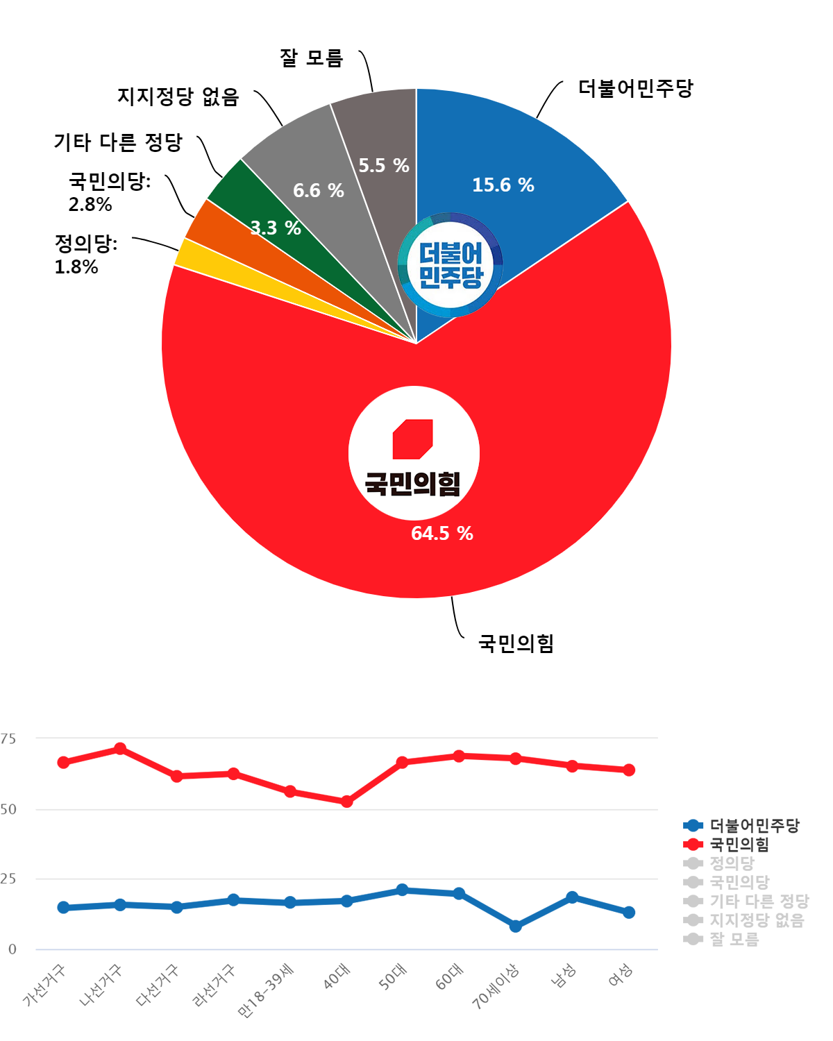 ¡ã Á¤´çÁöÁöµµ¡¥±¹¹ÎÀÇÈû 64.5%, ´õºÒ¾î¹ÎÁÖ´ç 15.6%, ±¹¹ÎÀÇ´ç 2.8%, Á¤ÀÇ´ç 1.8%
