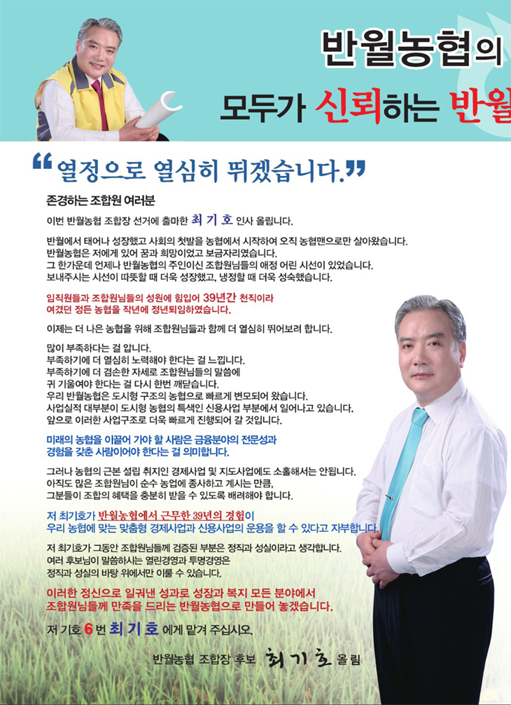 ÃÖ±âÈ£ Á¶ÇÕÀå Èĺ¸ ¼±°ÅÈ«º¸¹° (¹Ý¿ù³ó¾÷Çùµ¿Á¶ÇÕ)