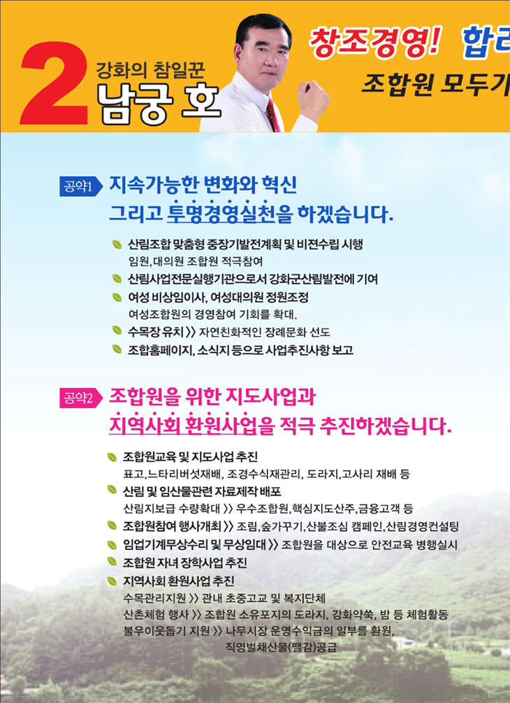 ³²±ÃÈ£ Á¶ÇÕÀå Èĺ¸ ¼±°ÅÈ«º¸¹° (°È±º »ê¸²Á¶ÇÕ)